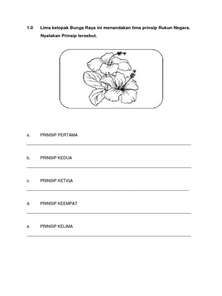 Lembaran Kerja 5 Prinsip Rukun Negara Worksheet