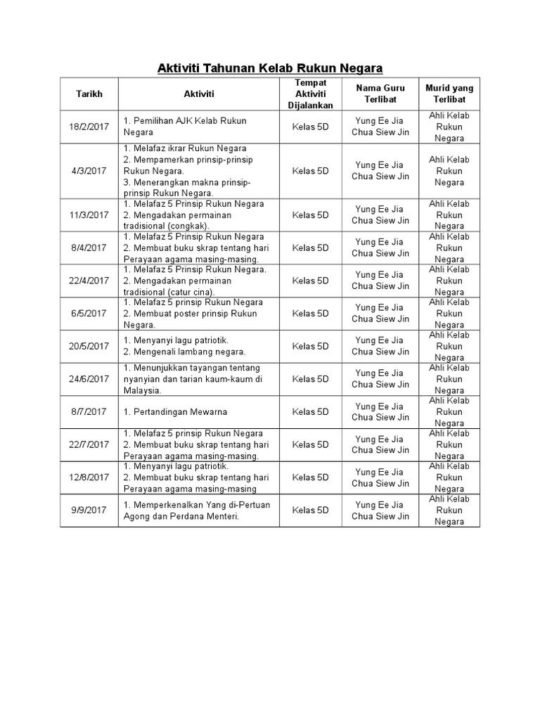 Doc Rancangan Aktiviti Tahunan Kelab Rukunegara 2018 Norhaini Nadi Academia Edu
