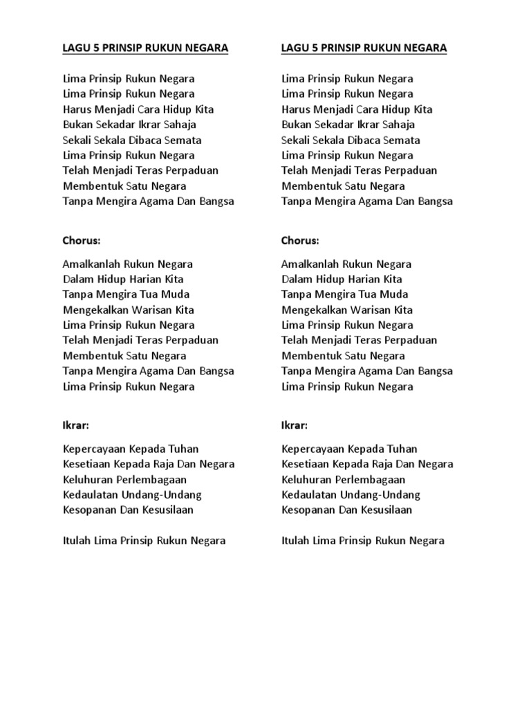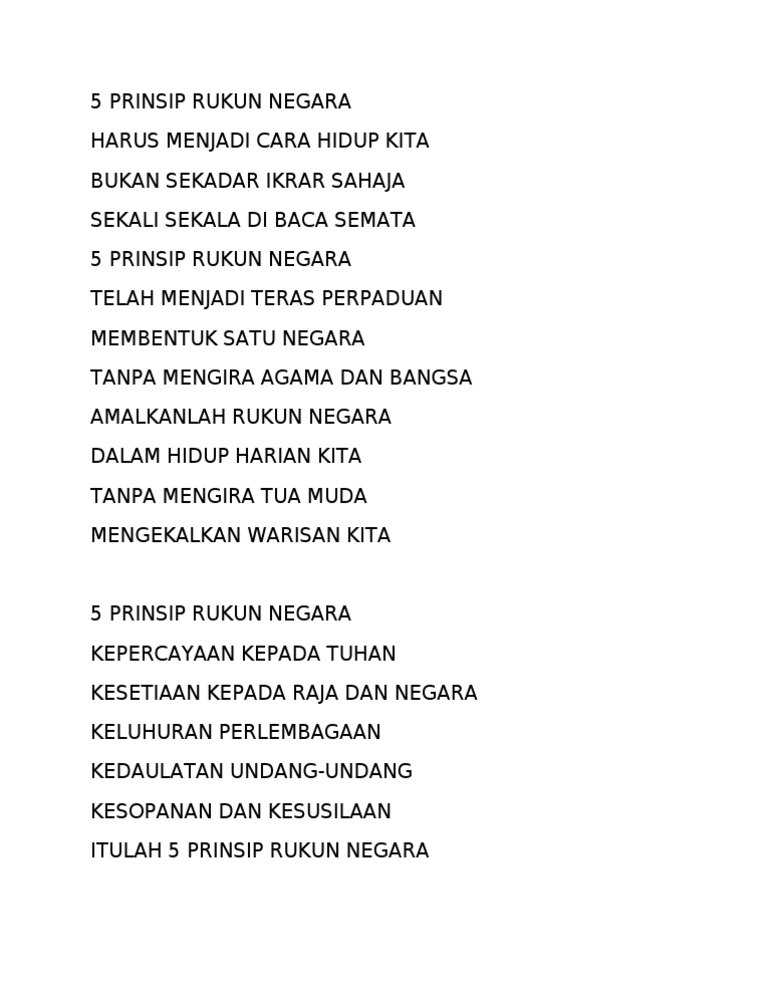 Lirik Lagu 5 Prinsip Rukun Negara Pdf